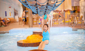 Zehnder s splash village hotel waterpark in frankenmuth joins two water parks in one half of which has a retractable roof that opens in warm weather.